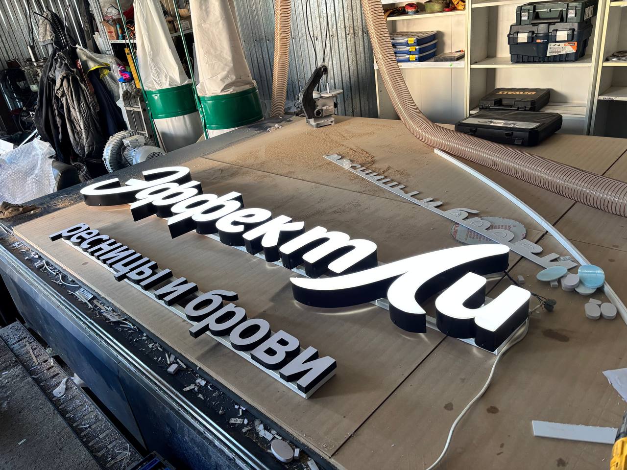 В основе конструкции — алюминиевые борта. Они не деформируются со временем, держат форму и дают ровную геометрию каждой буквы. Это важно, потому что именно от корпуса зависит, будет ли вывеска выглядеть как «дешёвка» или как нормальный бизнес.